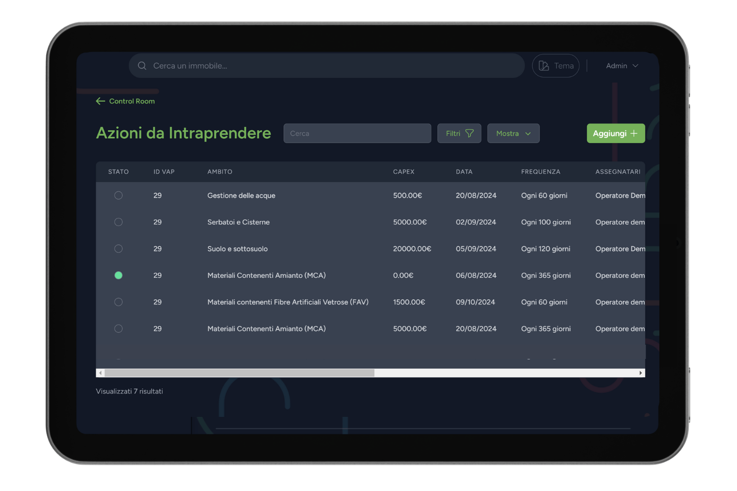 All’interno della nuova sezione Task puoi assegnare e monitorare manutenzione, gestione delle acque, controllo dei serbatoi, e altre attività necessarie per la conformità ambientale.